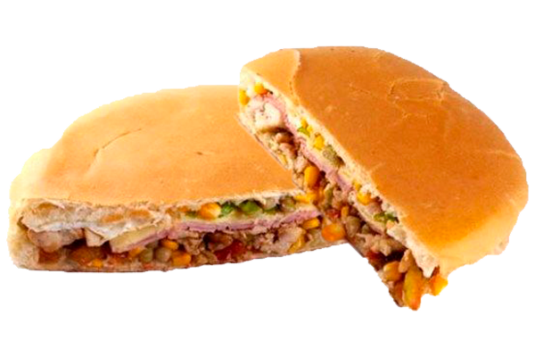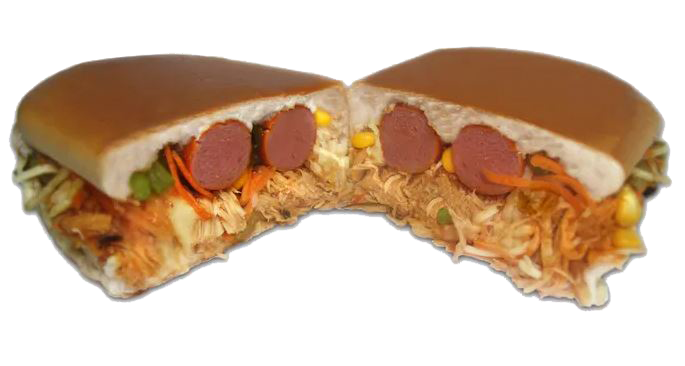 Calabresa, frango, maionese, ketchup, mostarda, milho, ervilha, ovo, queijo.