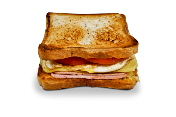 Frango na chapa, cebola refogada, maionese, ketchup, mostarda, milho, ervilha, ovo, queijo.